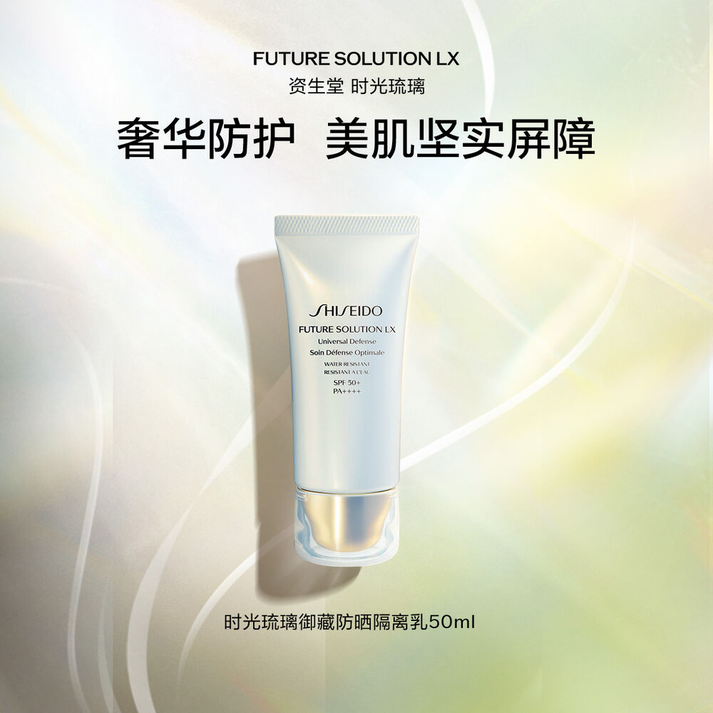 全新时光琉璃御藏臻采防晒隔离乳可隔离空气尘埃,抵挡紫外线,帮助肌肤在面对日常外界侵袭时保持透亮光泽。